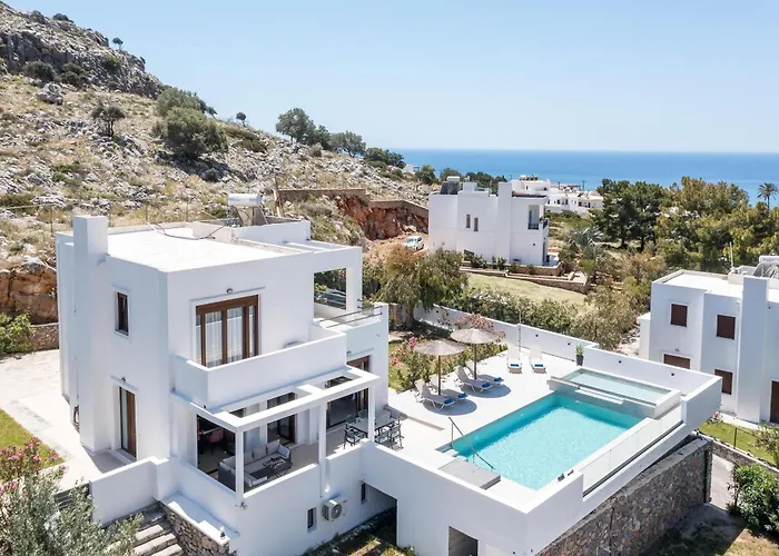 Willę wyposażono w udogodnienia do samodzielnego przygotowywania posiłków, w tym pełnowymiarową kuchnię oraz miejsce do jedzenia. W kuchni znajdują się kuchenka mikrofalowa, czajnik elektryczny i lodówka. Restauracja Kyanon Seaview Restaurant & Bar, serwująca dania kuchni europejskiej, znajduje się w niewielkiej odległości od obiektu. Położony prawie 10 min pieszo od willi dworzec Pefkos zapewnia opcje transportu w pobliżu. Willa dysponuje tarasem, na którym można zrelaksować się po męczącym dniu, a także basen.